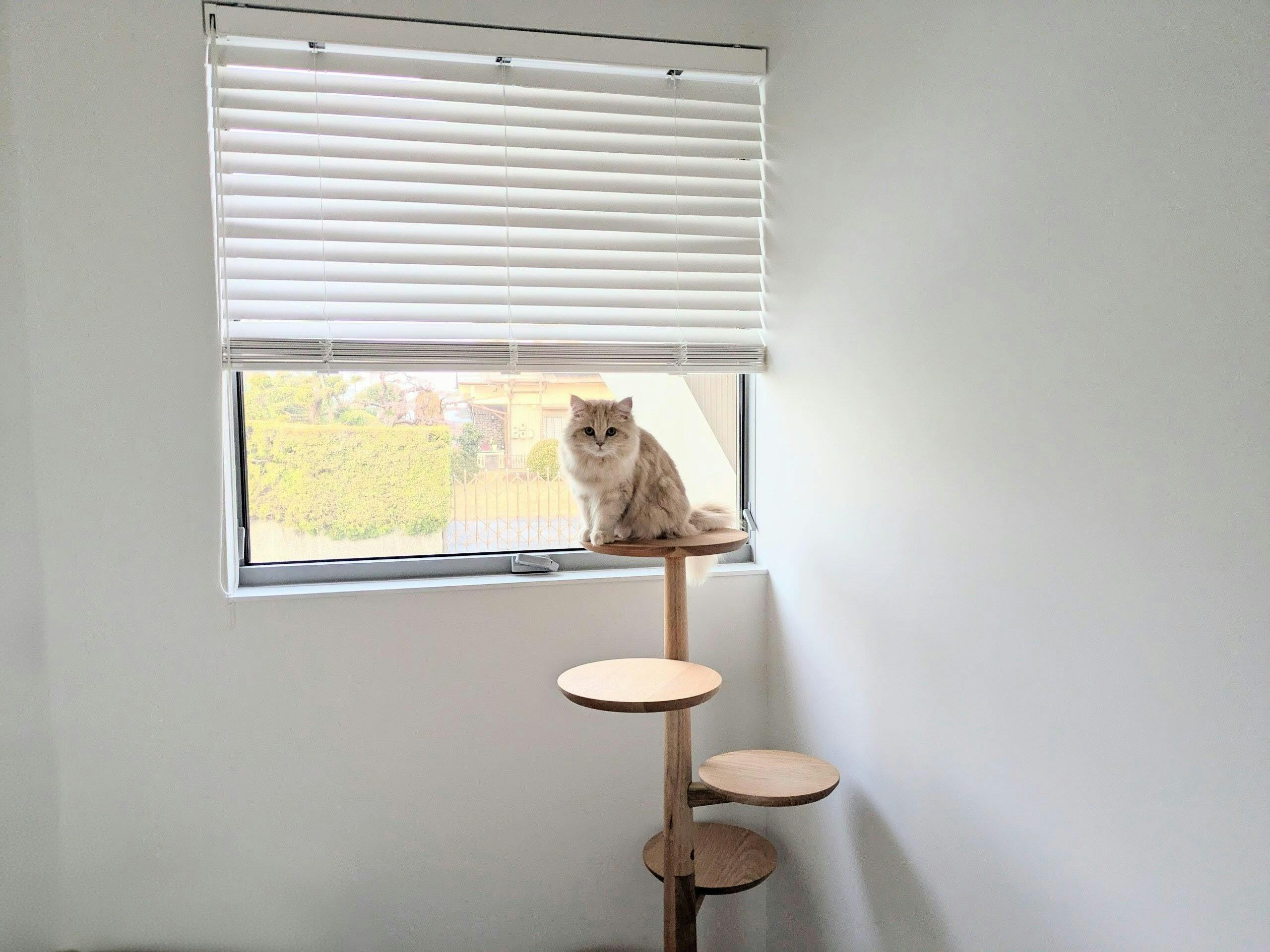 We have received comments such as, "It blends into the white space of the interior," "It tidies up the space," and "It's become the place where my cat feels most comfortable." Its appearance is gentle and familiar to both cats and people.